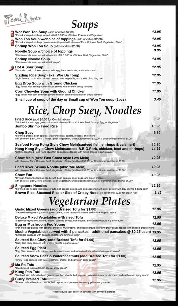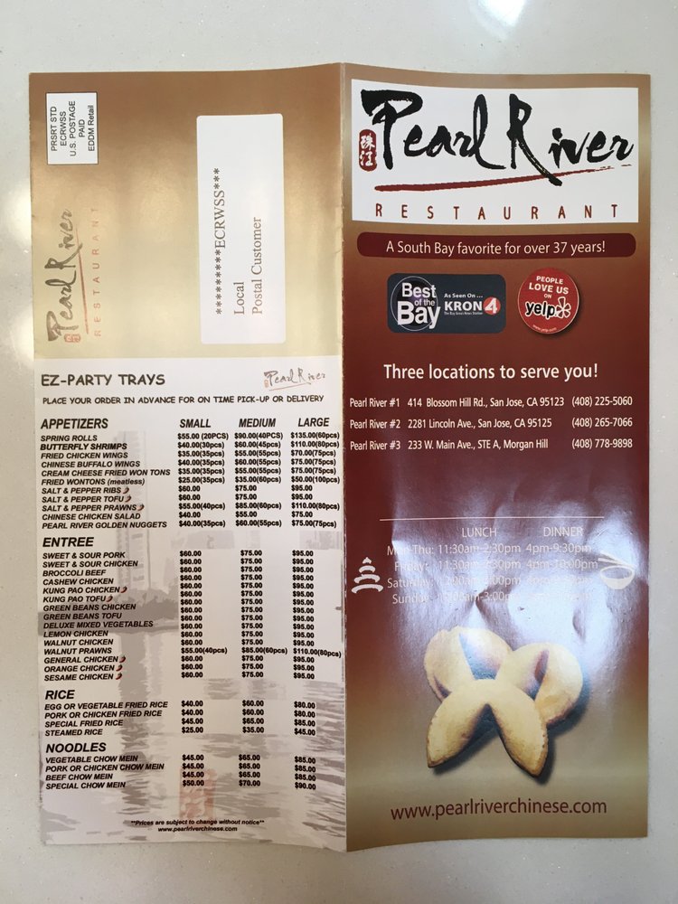 Pearl River Chinese Restaurant in San Jose offers a diverse menu with vegan and vegetarian options, takeout, delivery, and catering services. Their signature Golden Nuggets, Walnut Chicken, and Mu Shu Pork have received rave reviews from customers. The restaurant's casual ambiance, full bar, outdoor seating, and friendly staff make it a great spot for lunch or dinner. The quality and quantity of food for the price point are highly praised, making it a go-to spot for Chinese cuisine in the area. Don't miss out on their pot stickers, Cashew Chicken, and General Chicken dishes for a delicious and satisfying dining experience. With its convenient location and excellent food quality, Pearl River Chinese Restaurant stands out as a must-visit culinary gem in the neighborhood.