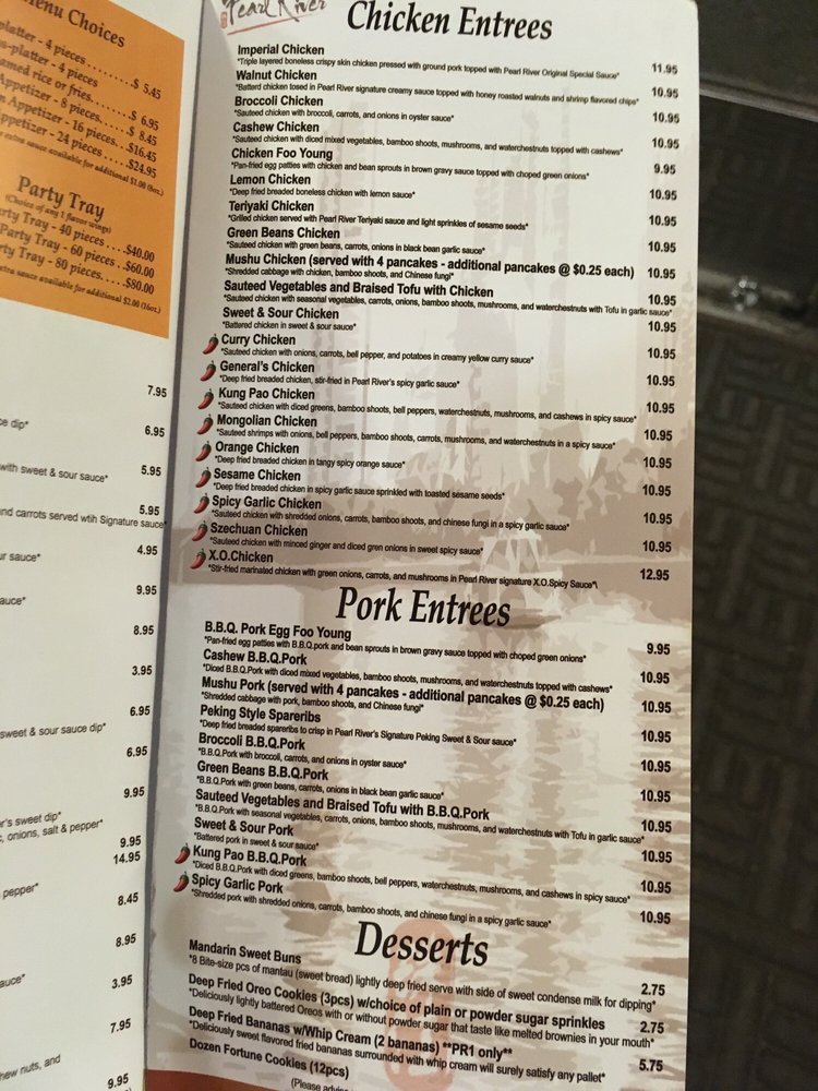 Battered chicken tossed in Pearl River signature creamy sauce topped with honey roasted walnuts and shrimp flavored chips.